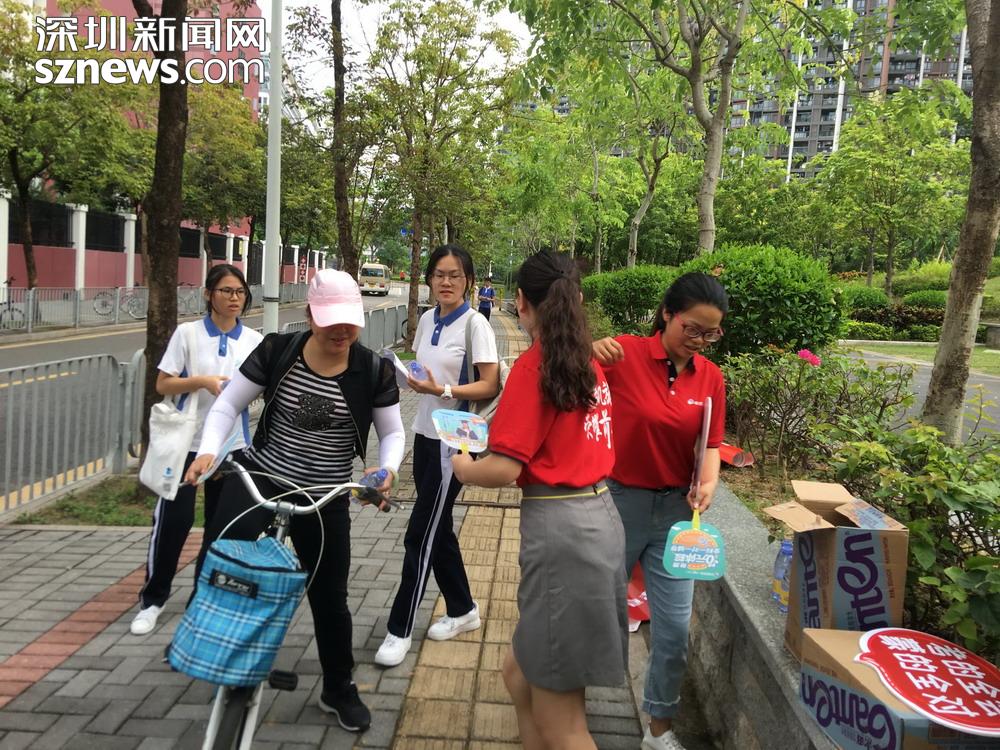 记者在深圳高级中学(集团)北校区校门口看到,有家长、老师及教育机构自发组织到考场外,为考生提供送水、接送等服务。据了解,他们是来自龙华区实验学校和深圳高级中学(集团北校区)的老师和考生家长。