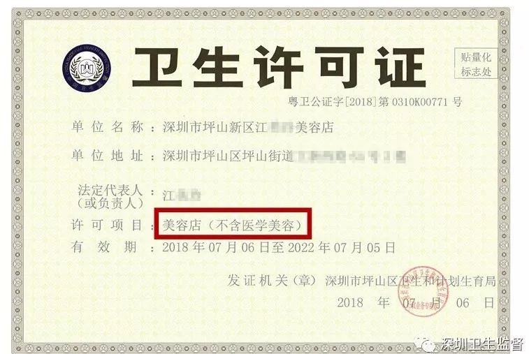 该美容院能出示有效的卫生许可证