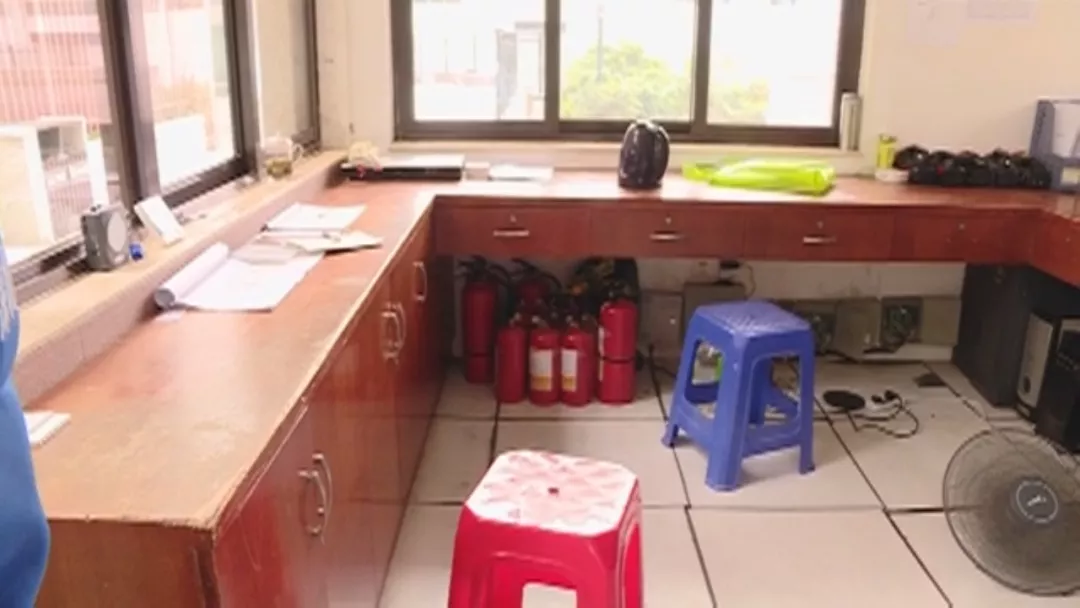 拿着木炭、铁桶和疑似汽油的燃烧物
