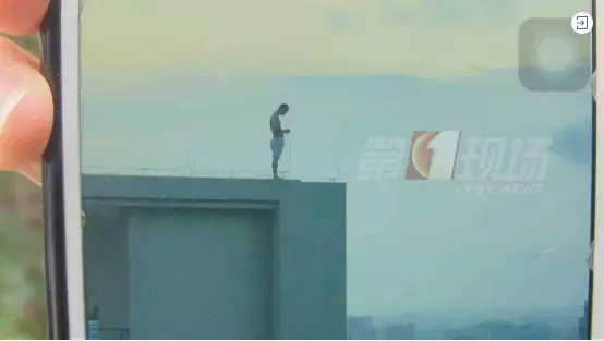 站在了小区一栋住宅楼的楼顶边缘上
