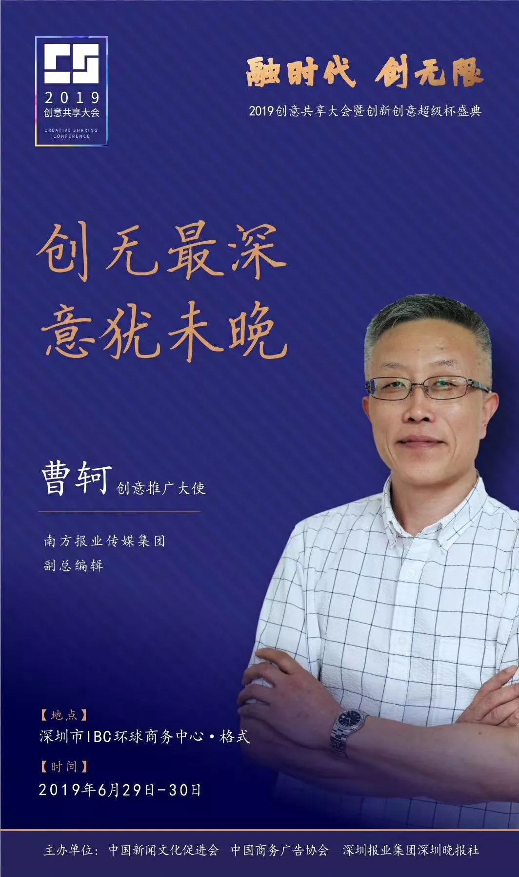 为了呼应这个时代命题,构建创新创意共同体,擘画美好图景和未来趋势,中国新闻文化促进会、中国商务广告协会和深圳报业集团深圳晚报社联合发起主办2019创意共享大会暨创新创意超级杯盛典。