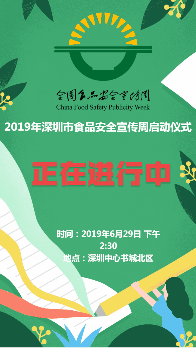 2019年食品安全宣传周来啦!为让更多市民进一步了解食品药品安全工作,提高公众饮食用药安全意识和自我保护能力,关注、认可国家食品安全示范城市的创建,深圳市食品药品安全委员会办公室,定于2019年6月18日至7月12日,举行2019年食品宣传周活动。
