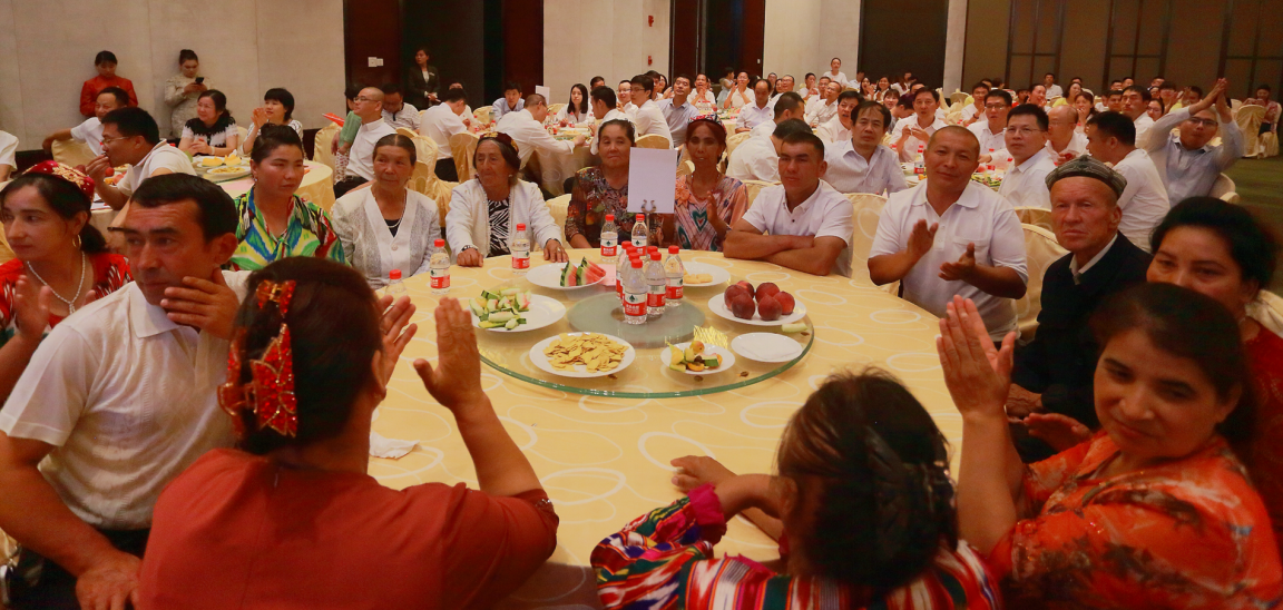 联谊会表演精彩纷呈,合唱《我和我的祖国》以振奋的旋律、嘹亮的歌声、满腔的热情带领全体党员回顾了我们党走过的光辉历程,抒发我们对党的无限热爱;在热烈的气氛下,深圳援疆前方指挥部总指挥杨春生带领参加活动的全体党员在党旗下一起重温入党誓词,表达了为党的事业奋斗毕生的决心;民族舞蹈《塔吉克婚礼》、《有那么一个地方》充满阳光和欢快;援疆警察代表张凯同志和援疆教师代表孙运辉老师演唱的《不忘初心》铿锵有力;全体人员合唱的一首《歌唱祖国》将会场气氛推向高潮,各族结对亲戚们聆听着热情的歌声,欣赏着欢乐的舞蹈,脸上都洋溢着愉快的笑容。活动最后,全体人员欢快的跳起了麦西来普,现场一派欢乐祥和,展现了各族群众团结在一起热爱祖国、热爱党、热爱家乡的情感信念。
