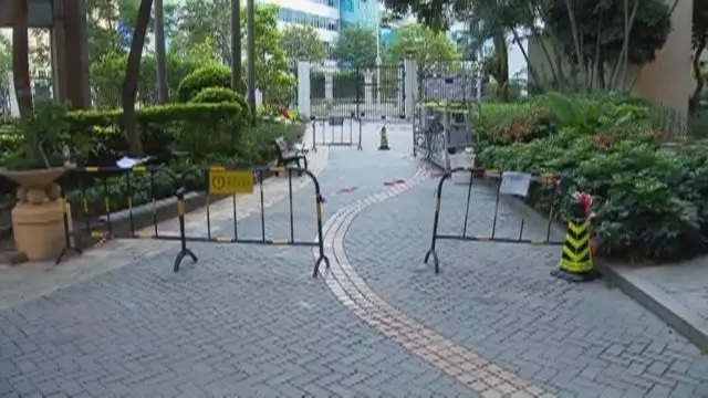事发后,在一旁的楼层,一户高层也在进行维修窗户。物业管理处立即在一楼对应的区域加装了警戒围挡,防止高空坠物。