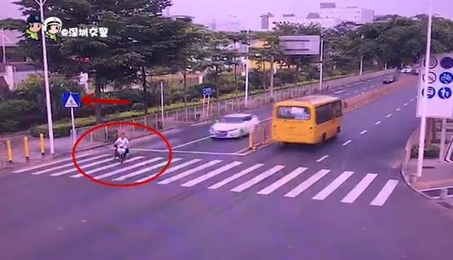 一男子骑车横穿马路被撞飞,而斑马线就在不远处