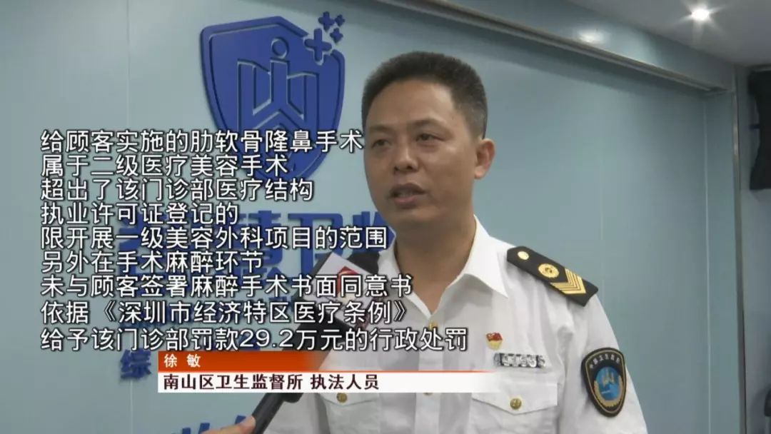 之前,林女士也将情况反映到南山区卫生监督所,执法人员也到场对整个手术过程进行了详细调查。整个手术过程,恩吉娜医疗门诊部是否真的存在违规操作呢?记者也联系了南山区卫生监督所。