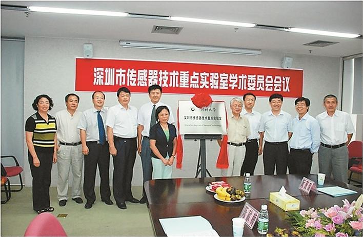 ▲李学金(左五)参加深圳市传感器重点实验室揭牌成立仪式。