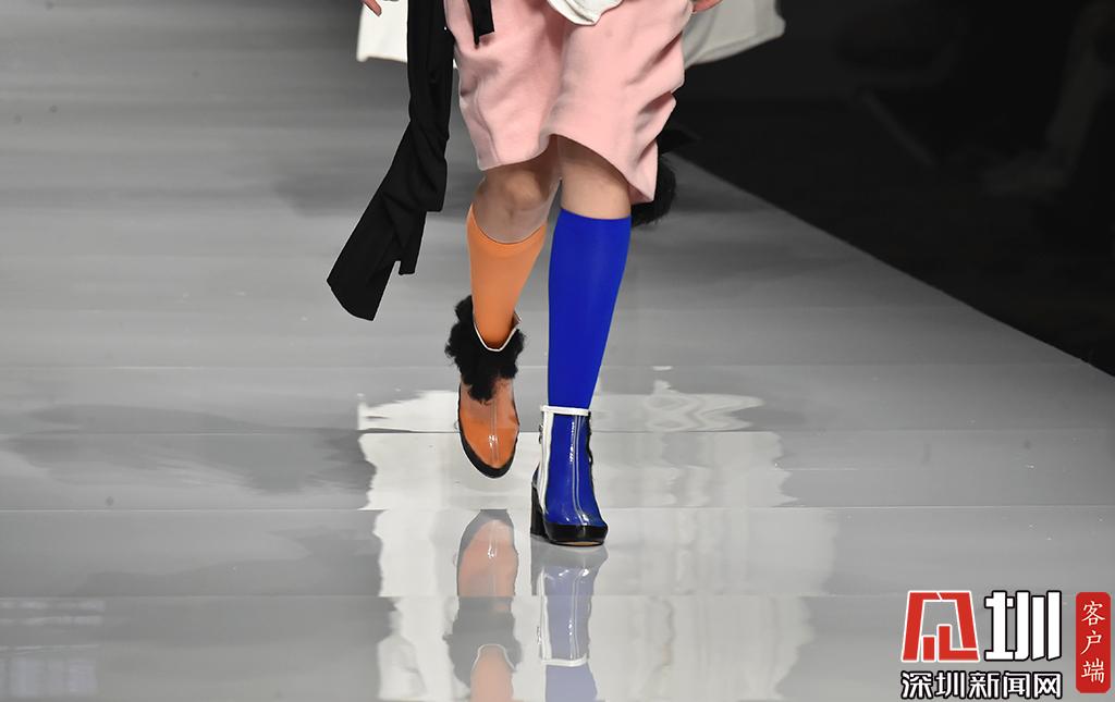 模特的鞋子颜色搭配吸引眼球