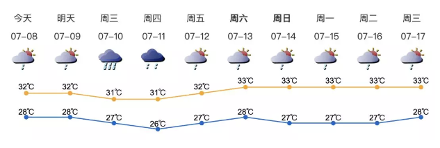 小暑过后,天气趋于炎热,偶有局地雷雨。