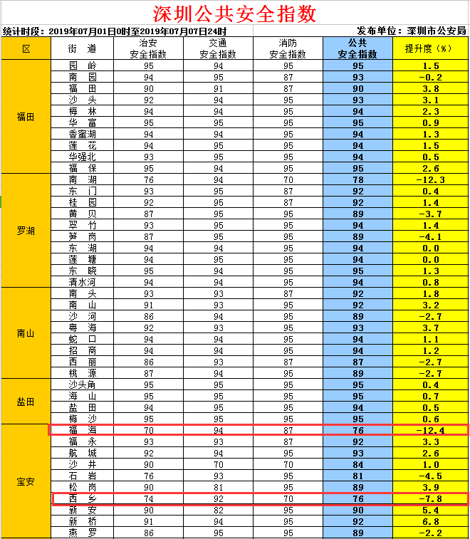 深圳公共安全指数发布 宝安这两个街道全市倒数第一