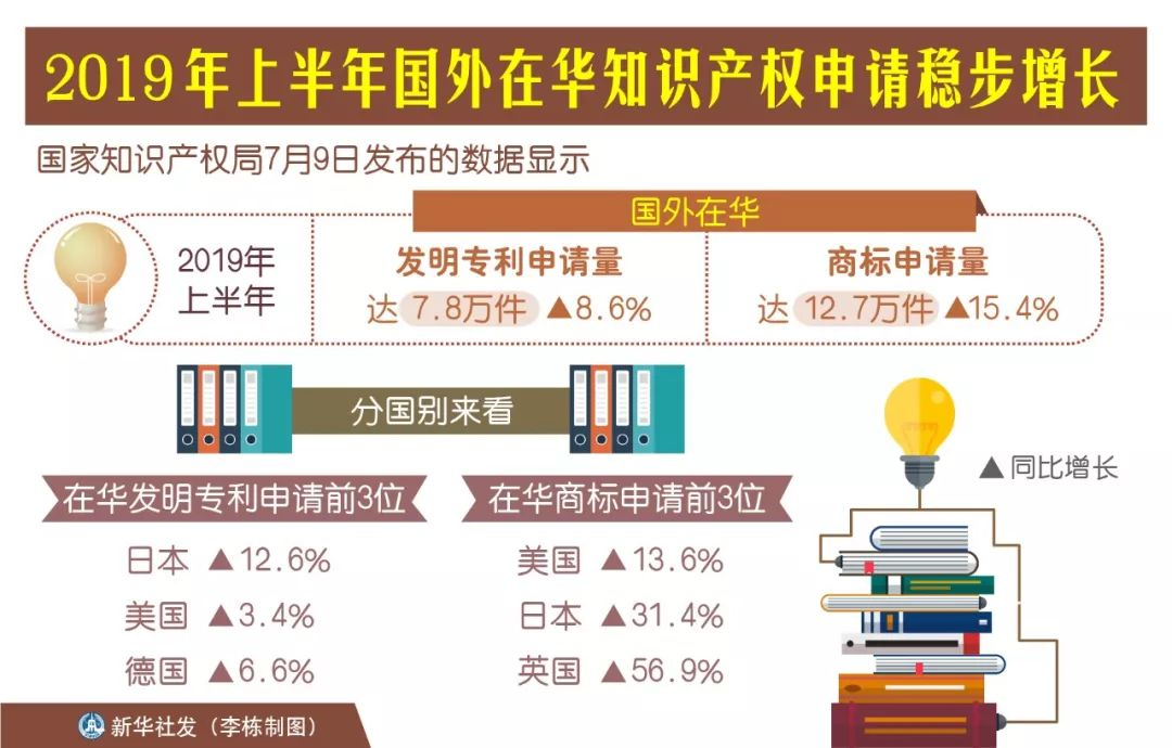 ③国家知识产权局数据显示,2019年上半年,国外在华知识产权申请稳步增长,显示出国际社会对我国知识产权保护的信心。