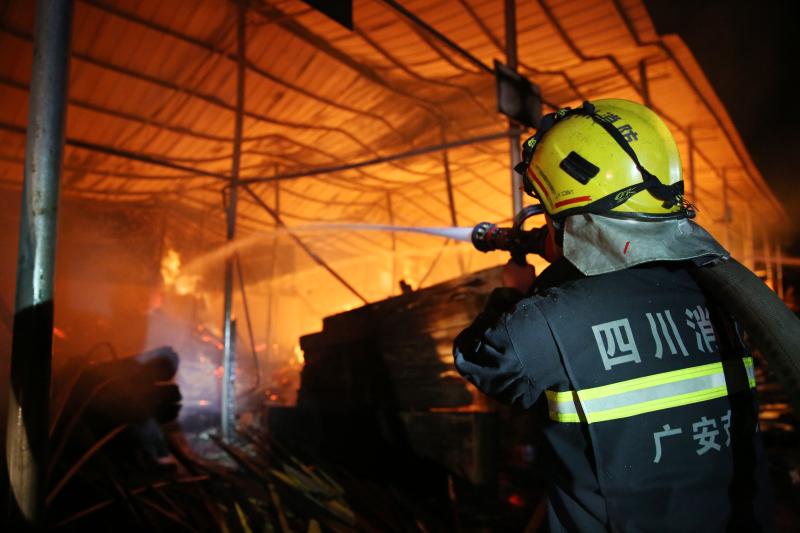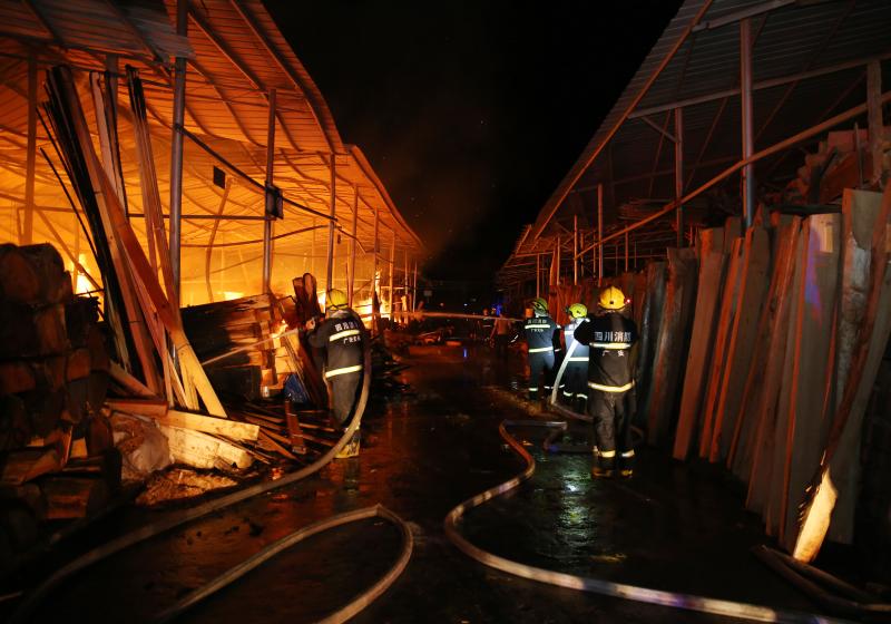 7月11日凌晨时分,广安区花桥镇花渠路木料市场突发大火,现场火势较大,消防救援部门出动12车47人赶往现场扑救。