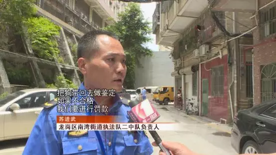 记者联系了南湾街道执法队,城管执法人员马上来到了现场。胡先生拿出了2011年罗湖区办理的养犬相关证明,强调这只狗是拉布拉多犬,是经过合法办证的。
