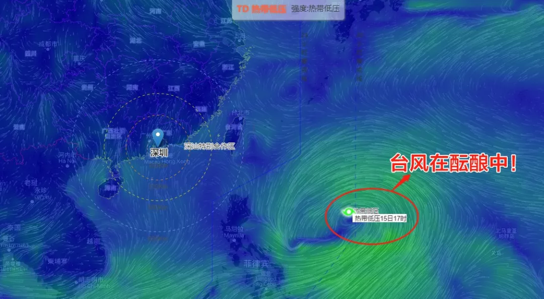 热带低压目前距深圳市约1900公里,