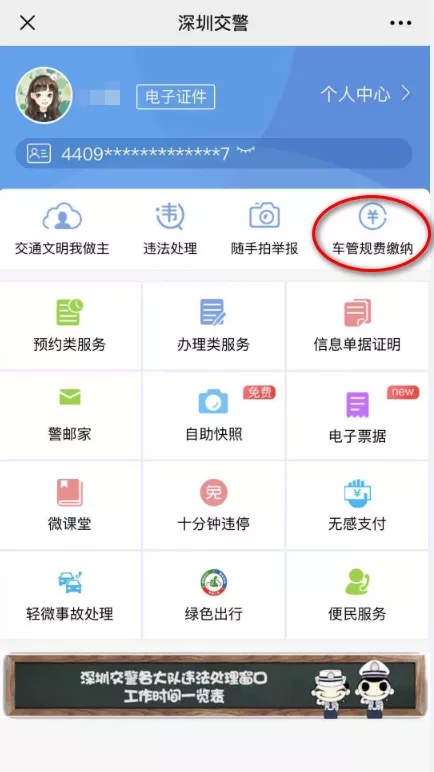 01 车主本人/代办人关注【深圳交警】微信公众号,点击进入【星级用户】,注册登录星级用户后,在页面选择【车管规费缴纳】。