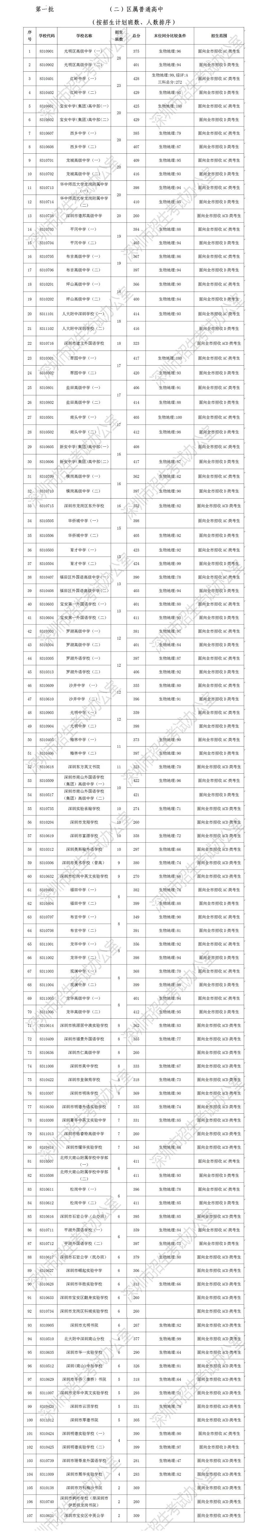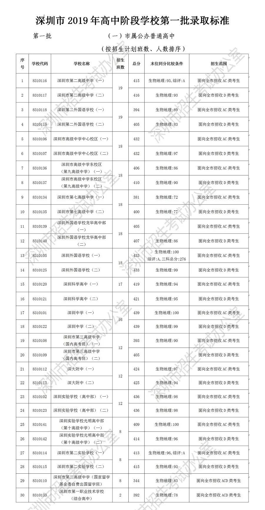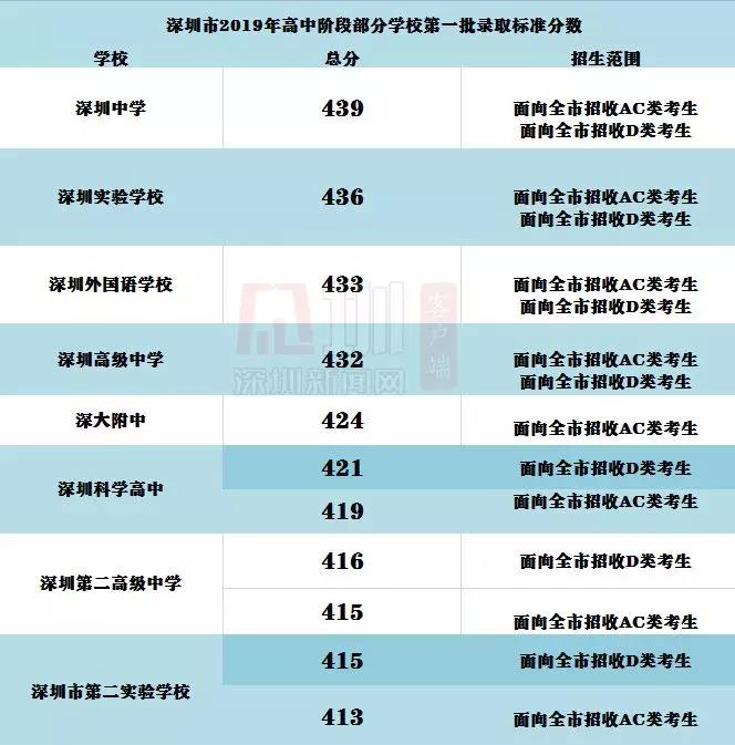 深圳高中录取标准分数出炉 盐高AC类406分、 D类414分