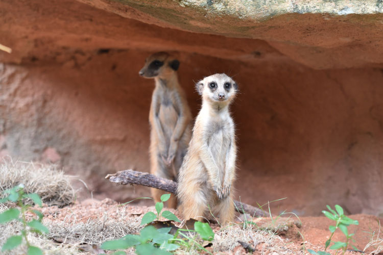 初来乍到的11只细尾獴,它们还需要一段时间慢慢适应新环境。周边稍有动静,它们就会捷足跑到洞穴里,只有少数几只胆子大的细尾獴会在洞口"站岗放哨"。