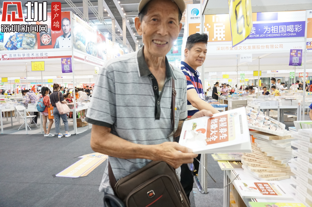 老爷爷已86岁,来深圳40多年了,见证了深圳这座城市从小渔村转变为现代化的城市,他精神矍铄,神采奕奕,向记者展示他买的各类书。