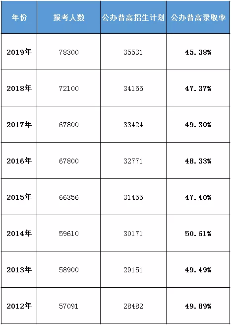 (上图为小编手工统计的近8年来的公办普高招生计划,部分数据可能有出入,仅供参考。)