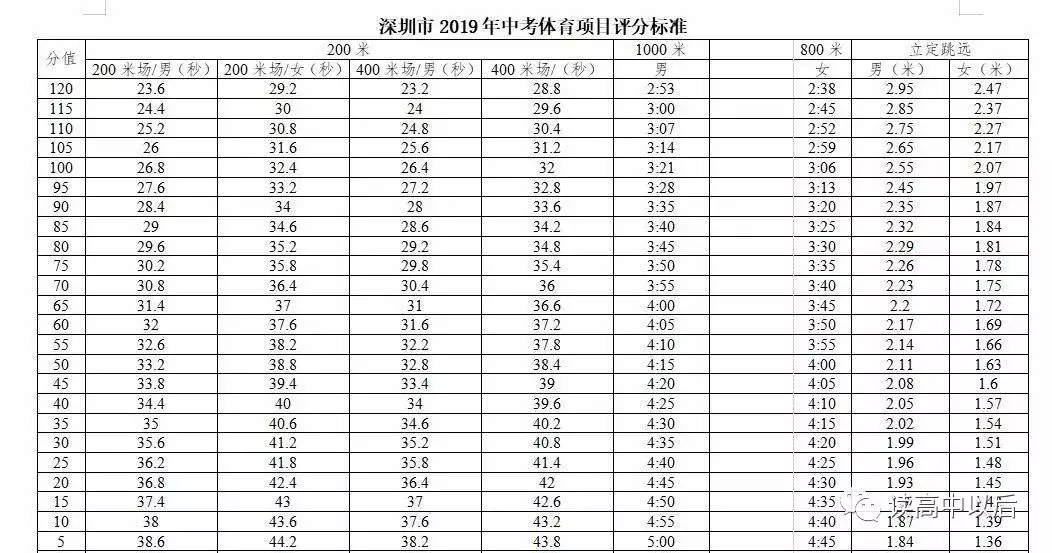 再比如女子800米,北京满分是3分24秒,深圳满分是3分06秒,足足多了18秒。小编贴出北京上海广州深圳的中考体育成绩标准数据图,各位自行感受一下: