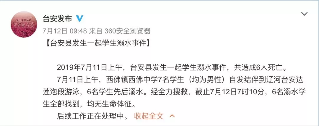 据媒体报道,7月11日,辽宁省台安县西佛镇达连泡村附近辽河段发生一起多人溺水身亡事件。