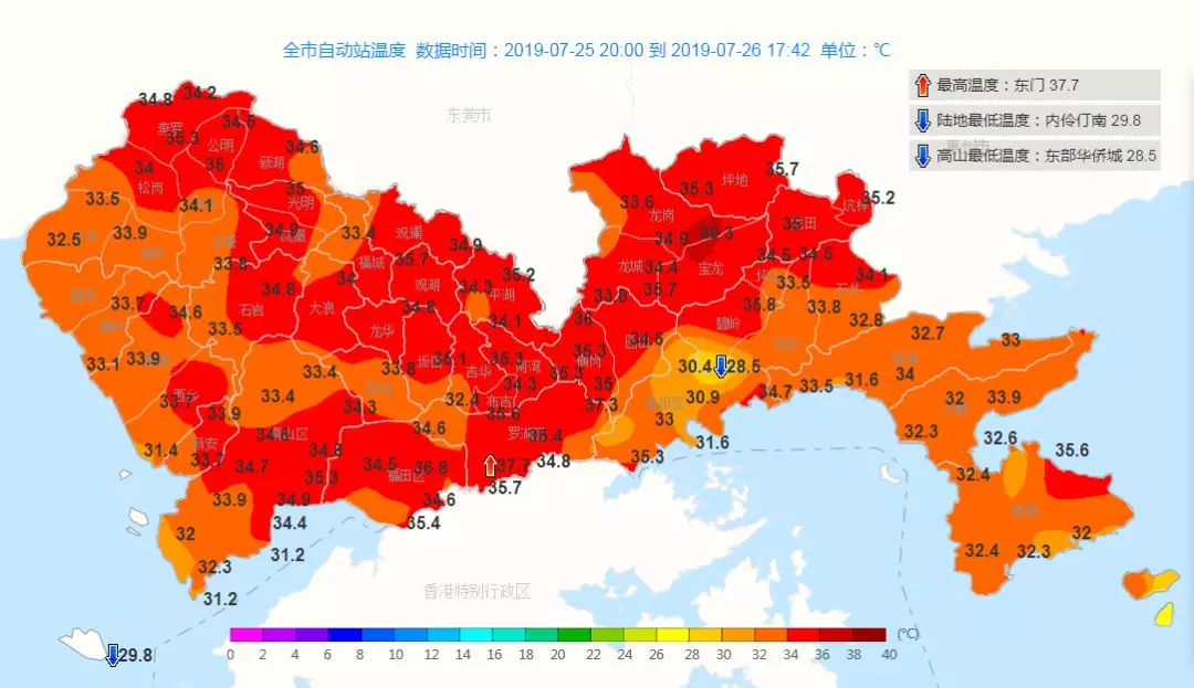全市昨日气温普遍在30-35℃