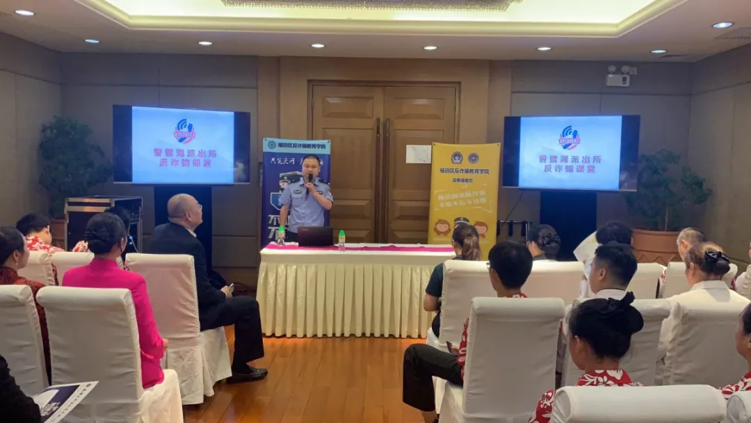 同时,第37场反诈骗教育学院公开课在香蜜湖派出所辖区丹桂轩开展。此次课程主要针对餐厅服务人员进行。根据服务人员工作时间长,平时休闲娱乐活动单一的特点,反诈讲师特别着重讲解“终结诈骗”小程序游戏的玩法,希望餐饮从业人员休息时多学习反诈知识,从而达到反诈目的。