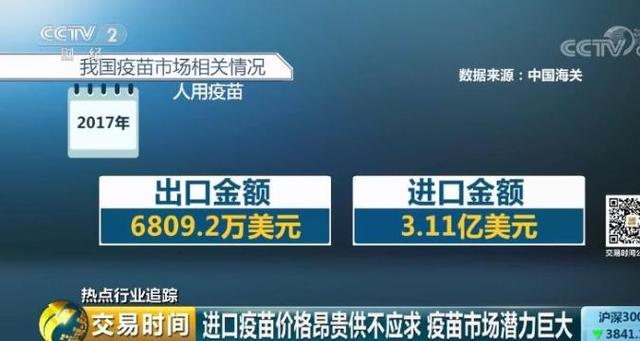 据中国海关的数据显示,2018年国内疫苗企业中只有辽宁成大、北京科兴、华兰生物等11家企业有疫苗出口,总计出口额为7600万美元。2017年,人用疫苗出口额6809.2万美元,但进口金额达到3.11亿美元。