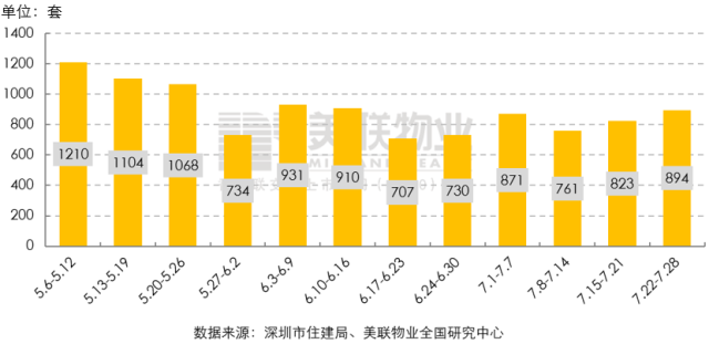 7月22日—7月28日一周内,全市共签约成交一手住宅894套/8.5万㎡,环比分别增长8.6%和8.0%。从周成交套数来看,连续两周环比增长,达到6周以来的最高值。