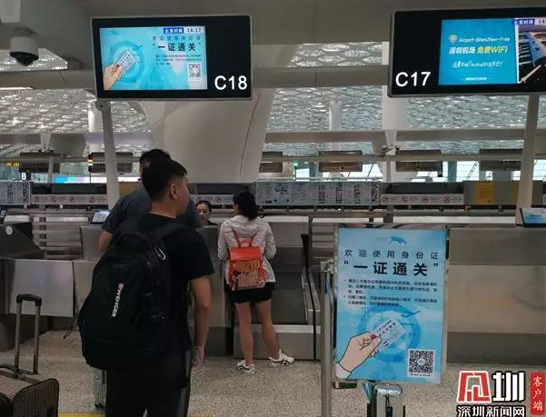 ②即日起,深圳机场全面试行国内航班身份证“一证通关”服务。今后,使用二代身份证购买机票的旅客,在完成选座值机后,仅需出示身份证即可直接办理行李托运、安检和登机手续,全程无需再出示登机牌。