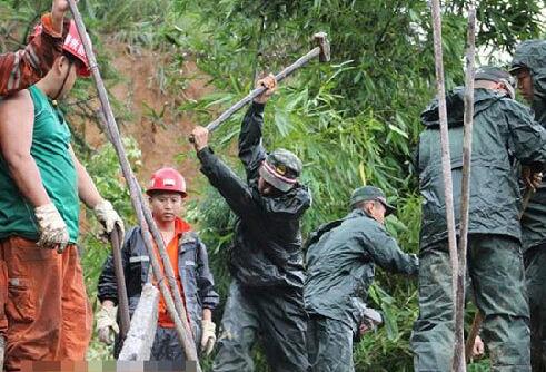 华蓥市李子垭发生垮塌2人被淹埋,武警官兵掀掉垮塌的屋顶
