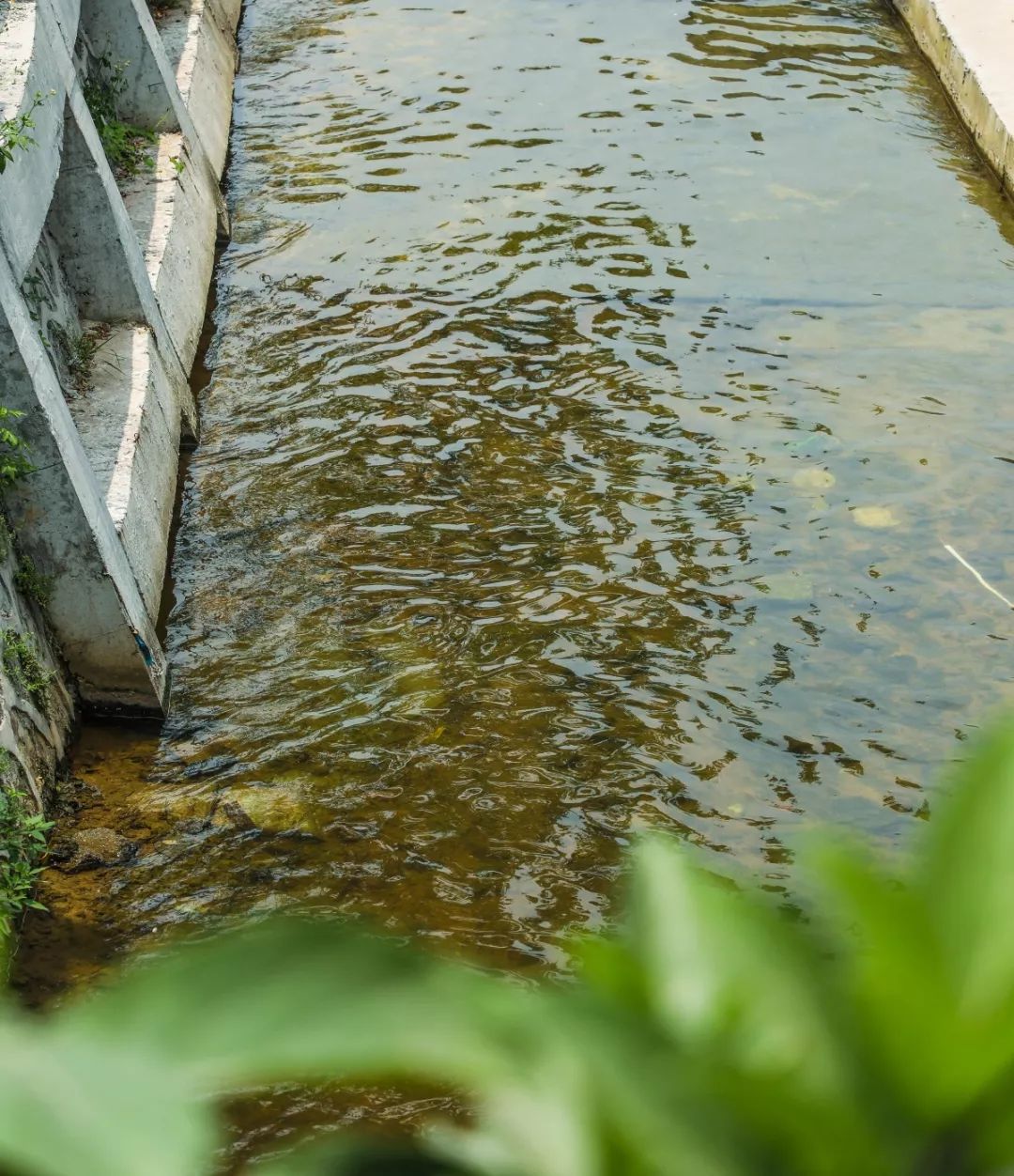 水流潺潺的机场外排洪渠