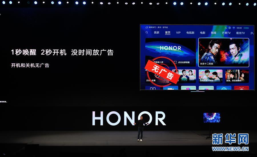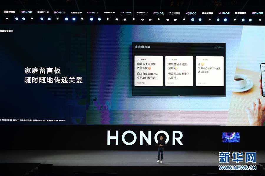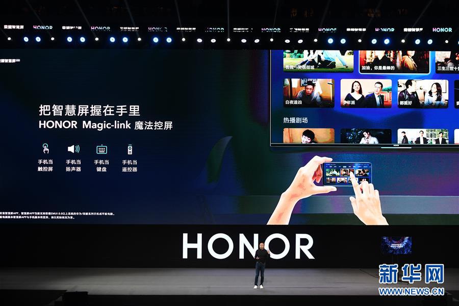 8月10日,华为荣耀总裁赵明在发布会上介绍荣耀智慧屏。新华社记者梁旭摄