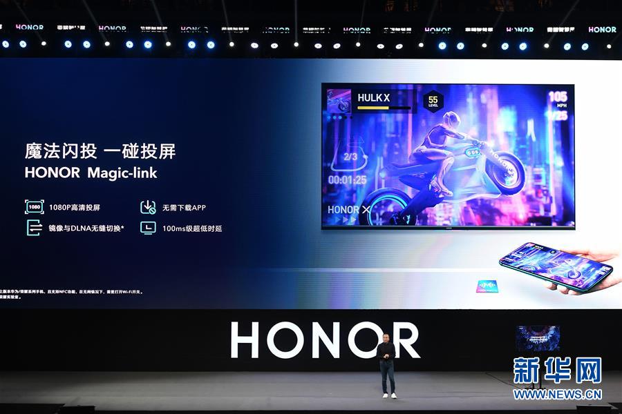 8月10日,华为荣耀总裁赵明在发布会上介绍荣耀智慧屏。新华社记者梁旭摄