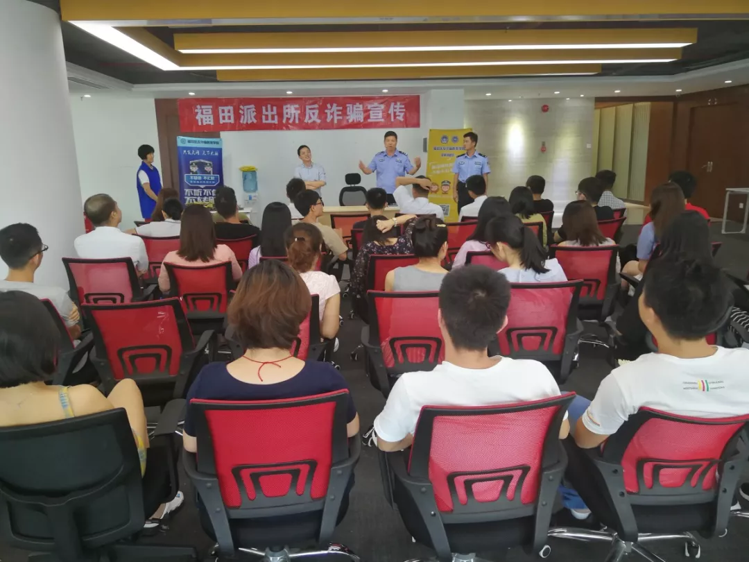 8月12日,福田区反诈骗教育学院系列第48场公开课走进香蜜湖派出所辖区东海朗庭酒店,第37场宣传活动走进福田派出所辖区翰森大厦。(两次活动覆盖附近商户及企业员工近300人。累计目前为止,共走进6234家企业及商户。)