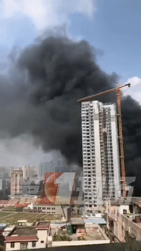 龙岗布吉一在建楼盘突发起火,蹿起数十米高黑烟(图)