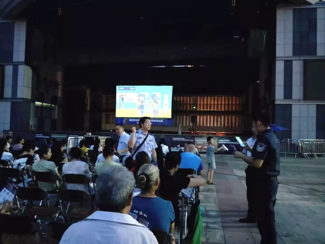 8月16日,福田区反诈骗教育学院系列宣传活动第44场走进环庆文化广场。第63场“百场电影进社区”主题活动走进皇岗村文化广场(两场活动辐射附近1000人,目前为止累计辐射企业及商户7367家)。