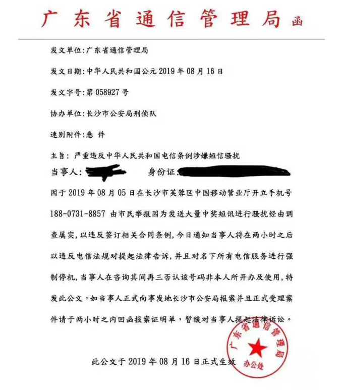 坪山坑梓辖区李女士接到一个自称是广东省通信管理局的电话,告知她的手机号码涉嫌发送大量骚扰信息被人举报,现由长沙市公安局立案调查。