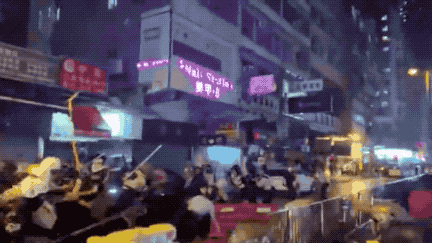 ④25日晚,激进示威者在荃湾沙咀道与警方发生冲突,一度向警员进逼,警方后退。危急之下,现场至少有3名警察拔枪,现场传出枪声。