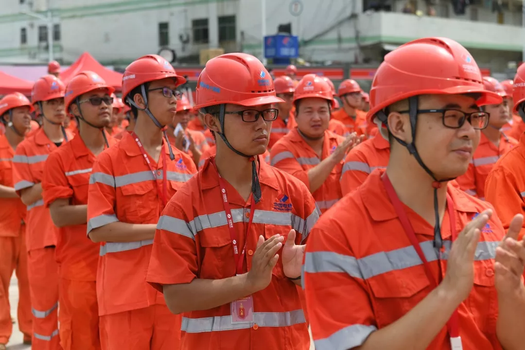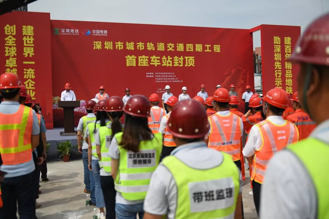 ▲深圳市城市轨道交通四期工程首座车站-洲石路站封顶仪式现场