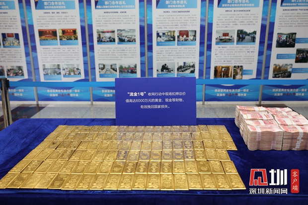 发布会现场展示缴获的黄金、现金等实物(深圳市税务局稽查局供图)