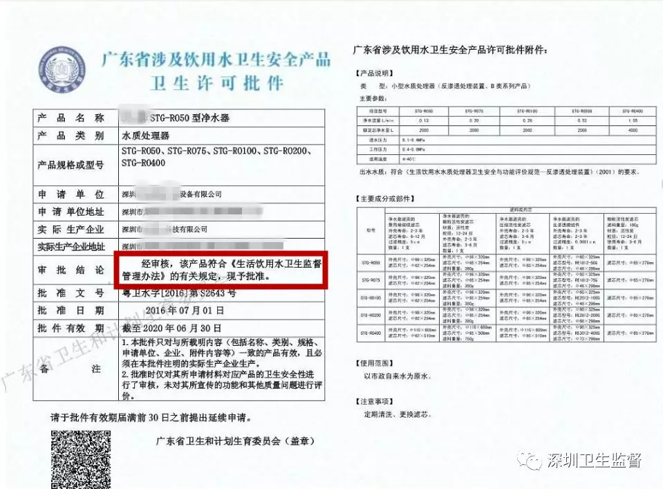 4.相关设备及滤芯应持有卫生许可批件