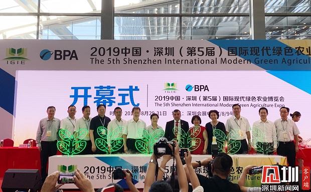 见圳客户端·深圳新闻网2019年8月29日讯(见圳客户端、深圳新闻网记者 余俐洁 黄芷苑 常军平)8月29日,中国·深圳(第5届)国际现代绿色农业博览会(以下简称“绿博会”)在深圳会展中心开幕,现场有逾千家企业参展,34个深圳帮扶地区带来超过500种绿色生态农产品。深圳市政府党组成员、深圳市对口帮扶领导小组副组长陈彪出席活动。