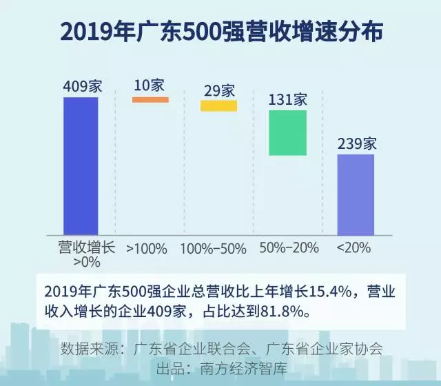 2019年入榜广东民营100强企业中前10强的平均营业收入比上年增长24%。