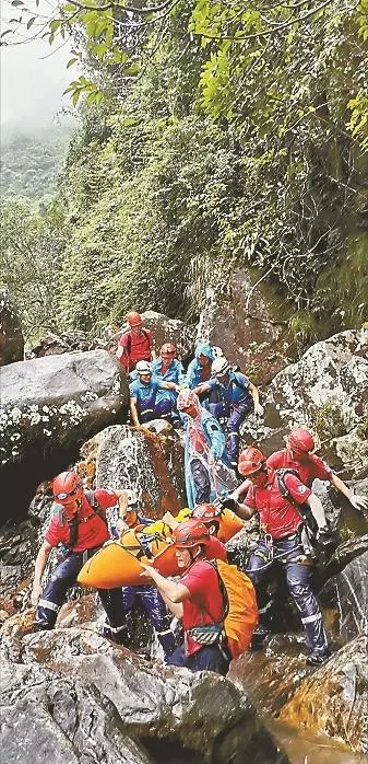 将不幸遇难的队友接出山,深圳蓝天救援队队员们悲痛万分。