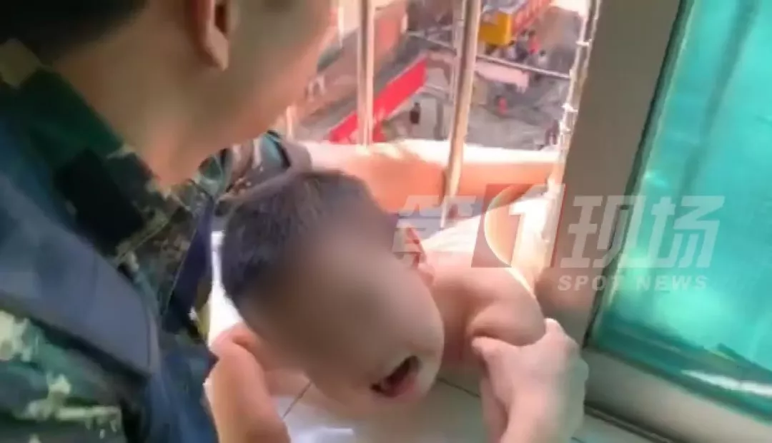 原标题:惊险!两岁男童身悬半空,关键时刻,他们一脚破门!