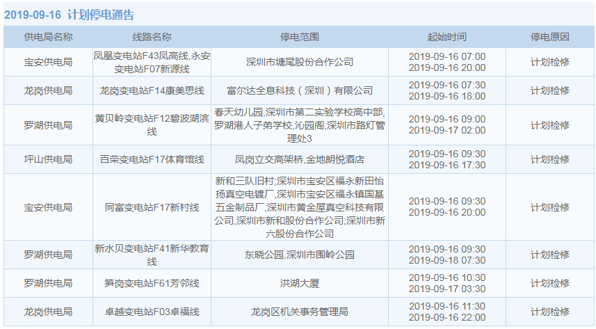 ■温馨提示:根据此前报道,5日起至12日,深圳要停电的地区如下: