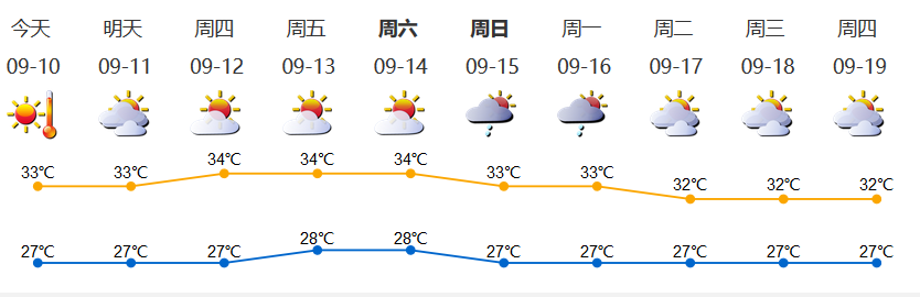 我市今天晴天间多云,局地有短时阵雨或雷阵雨;气温27-33℃,中北部及人口密集区最高气温可达35℃或以上;偏南风2-3级;相对湿度60%-90%。