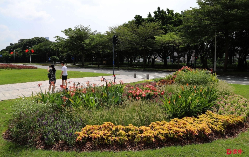 除了花带,市城市管理和综合执法局还在深南大道行人过马路的地方新打造了10个花园路口,每个小花园5-10平方米,结合原有路口的景观设计,融入海绵生态理念,增加蜜源、观花和色叶植物,组合成花境,让在路口等红绿灯的市民能欣赏到深圳的自然之美。