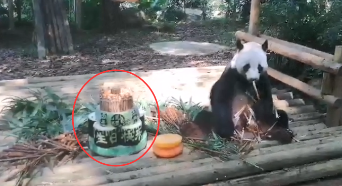 工作人员特地从四川空运了一批新鲜的方竹笋,还做了个生日蛋糕给他